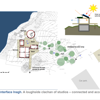 Is breá linn a bheith ag obair ar aonaid nua stiúideonna cónaithe a fhorbairt le comhlacht ailtirí Seán Harrington a bhfuil gradaim bronnta ar shaothair dá gcuid. Cuirfidh sin go mór lenár gcumas feidhmiú agus ar chumas ealaíontóirí fanacht ar an láthair féin ionas nach mbíonn oiread gá le carranna a úsáid. Tugtar cúpla seat scáileáin anseo síos ach is féidir na pleananna réamhoibre a fheiceáil anseo. Táthar ag tosú anois i samhradh na bliana 2023 ag cruinniú an €500,000 a theastóidh leis an togra seo a thabhairt i gcrích. Ba bhreá linn scéal a fháil uait má tá smaointe ar bith agat nó dá mba mhaith leat oibriú i gcomhar linn ar an togra forbartha seo.