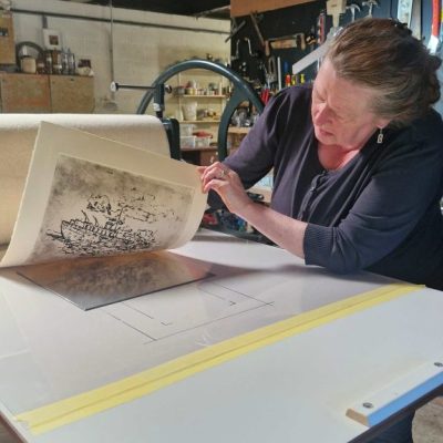 Tá an t-ádh orainn in Interface go bhfuil áit aoibhinn inár dtimpeall le hoibriú ann agus mar ábhar spreagtha againn. Tá teilgcheárta ó Ré an Chré-Umha anseo, preas eitseála (le leaba priontála 80 x 160cm) againn, foireann uirlisí adhmadóireachta láimhe á chur le chéile agus trealamh closamhairc ar fáil ar cíos. Má tá spás á chuardach agat le hoibriú ar thogra, tuige nach dtógann tú spás ar cíos uainn ar feadh roinnt laethanta?