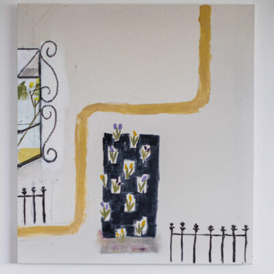 My paintings are made up of loosely connected images, creating fragmentary worlds that are often concerned with boundaries and an ordering of forms within and across urban and rural thresholds. Recent work references the public park as a constructed landscape made up of paths, flower beds, trees, open grass and playgrounds; a contained space of respite within the wider complexity of the city. The paintings serve as parallel arenas, bringing together images and motifs that are shaped by observation and drawn from memories of lived places, and shifting experiences of everyday moments. The arrangement of subject matter entails a playful negotiation between what is real and what is fiction; crossing and re-crossing the edge between the park as a place and the park as an idea for imaginative speculation in the material form of paint on canvas.