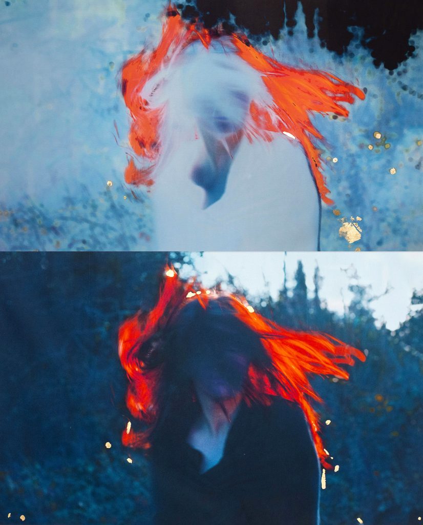 ‘Amber I & II’ 2022, diptych, digital print on fabric with gold leaf 70cm x 110cm